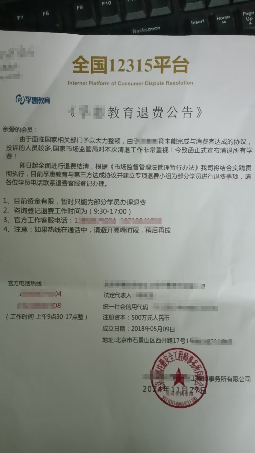 近日,市民朱先生收到一個快遞包裹,包裹內(nèi)有一張落款為某教育機構(gòu)的退費公告,并附有一個電話。朱先生想到之前確實在網(wǎng)上辦理過相關(guān)教育培訓(xùn),便信以為真,電話聯(lián)系了退款客服,并添加了“退款客服”的聯(lián)系方式。