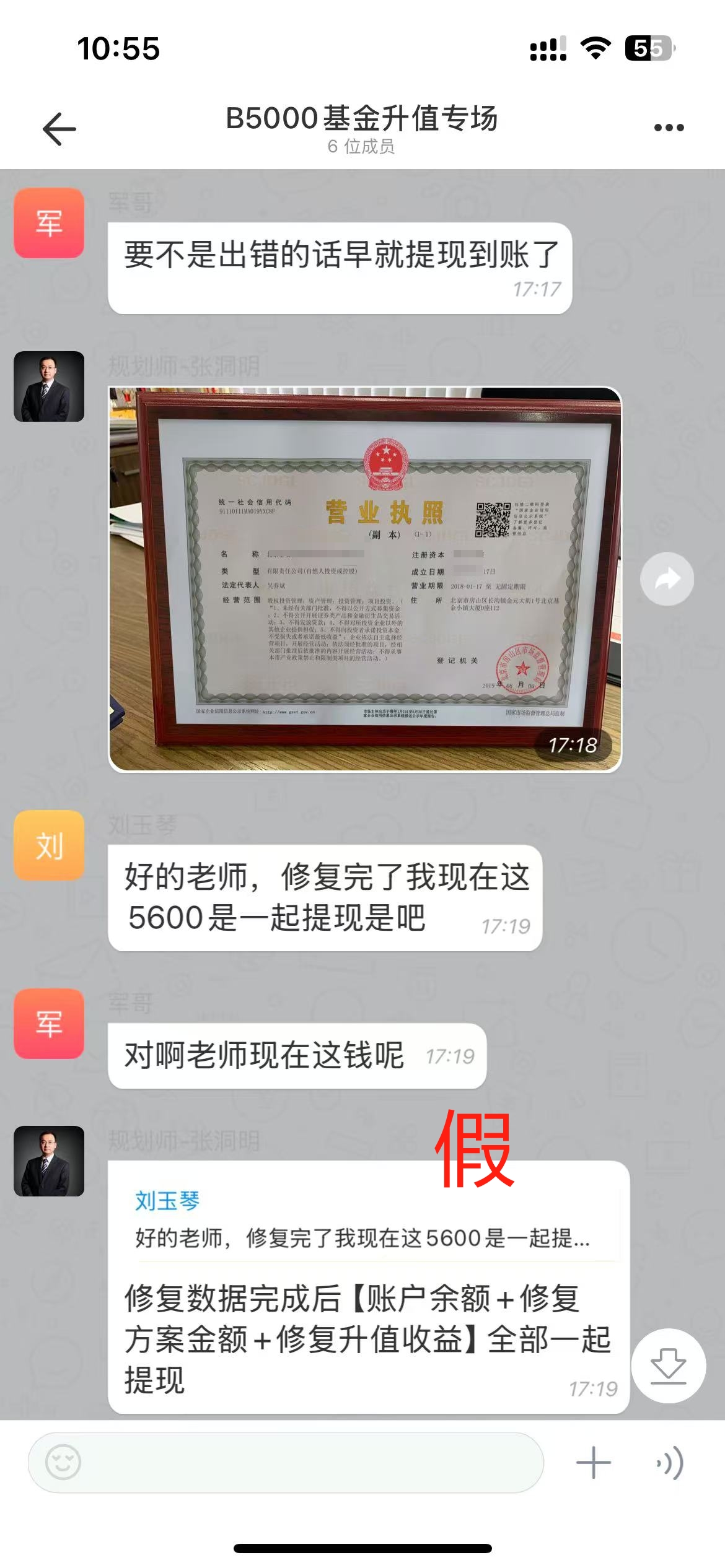 “客服”稱,之前的公司被一家基金公司收購了,所以現(xiàn)在提供的退款渠道只能通過購買基金增值的方式進行,并且還發(fā)送了偽造的營業(yè)執(zhí)照打消其顧慮。隨后,將信將疑的朱先生就在客服的指導(dǎo)下下載了一款金融理財app,并根據(jù)回款方案購買了基金。